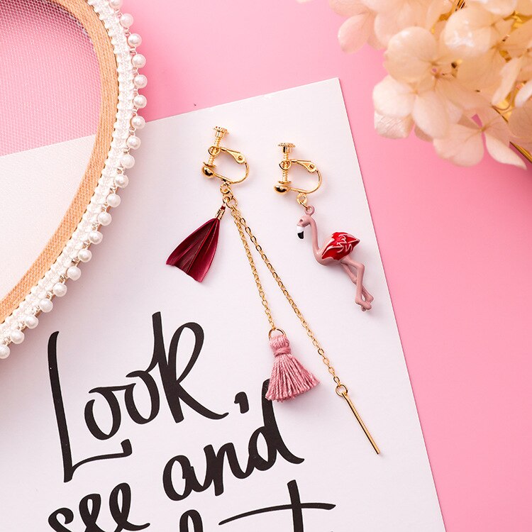 Wearing these beautiful asymmetrical pink flamingo earrings is a compliment waiting to happen. The earrings screw on making them super easy to wear without fear of losing an earring back.