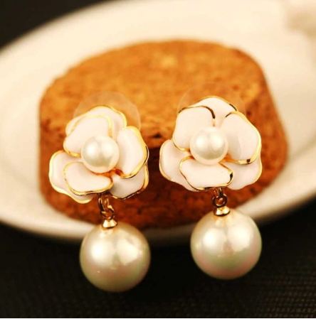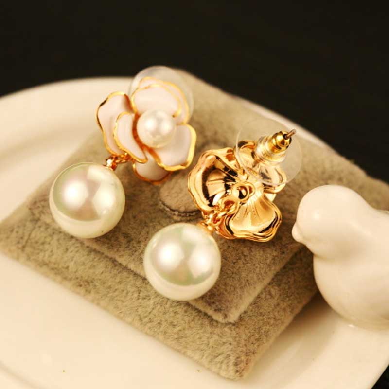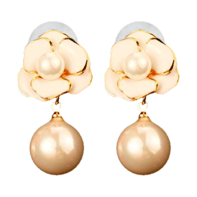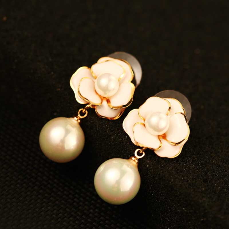 Trendy Style Camellia Flower Stud Earrings Pearl Flower Big Brand Eesign Earring Boucle Femme Pendante Chic Jewelry